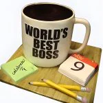 Этот необычный 3D-торт в виде кружки выглядит как настоящая керамическая чашка. Гладкая мастика передает фактуру фарфора, а ручка и бортики выполнены с удивительной точностью. Торт выполнен в нежных бежевых тонах с золотистыми акцентами, что придает ему элегантный и стильный вид. Такой десерт станет ярким украшением любого офисного праздника, создавая атмосферу уюта и тепла.