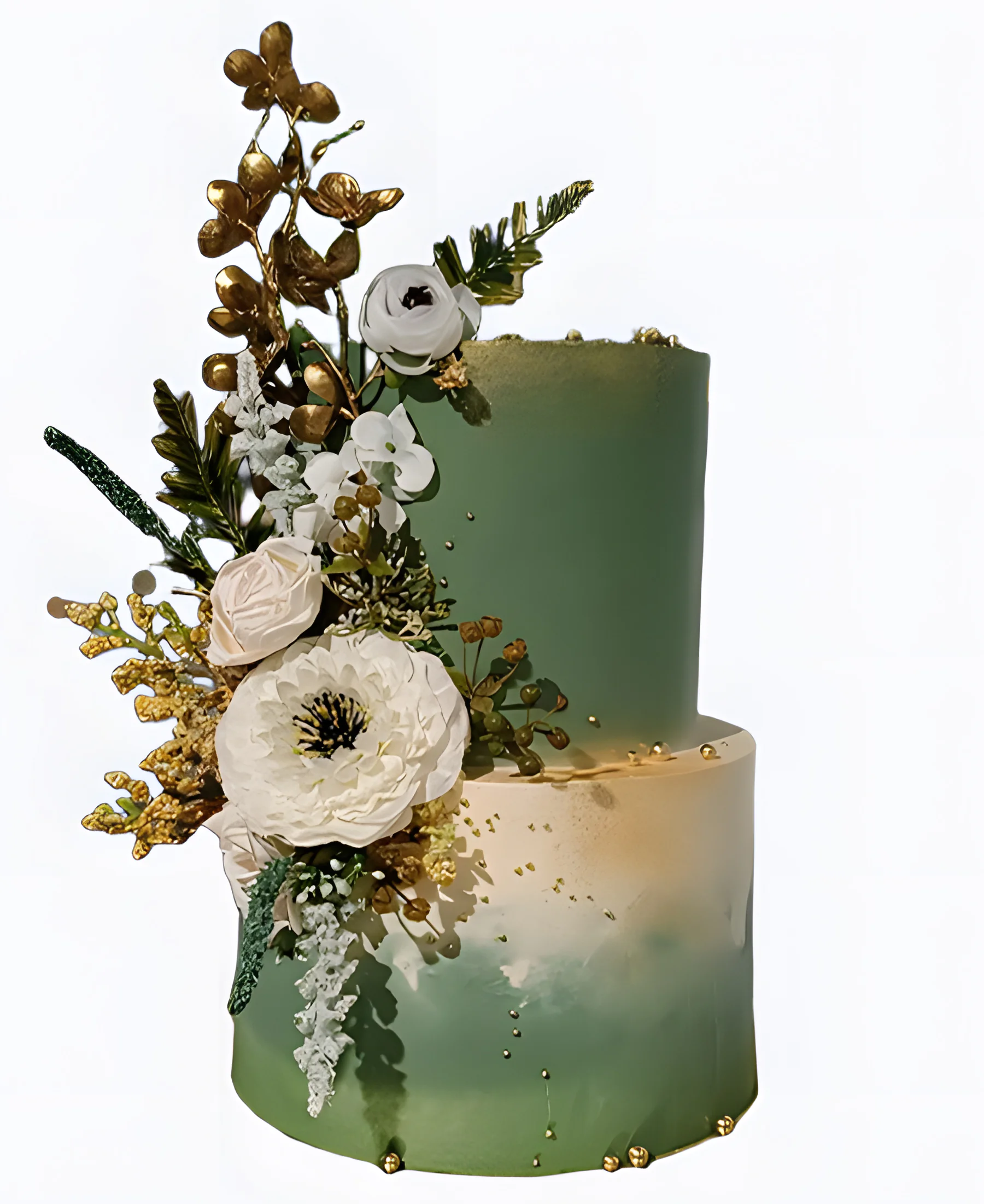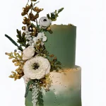 Корпоративный торт зеленый с букетом