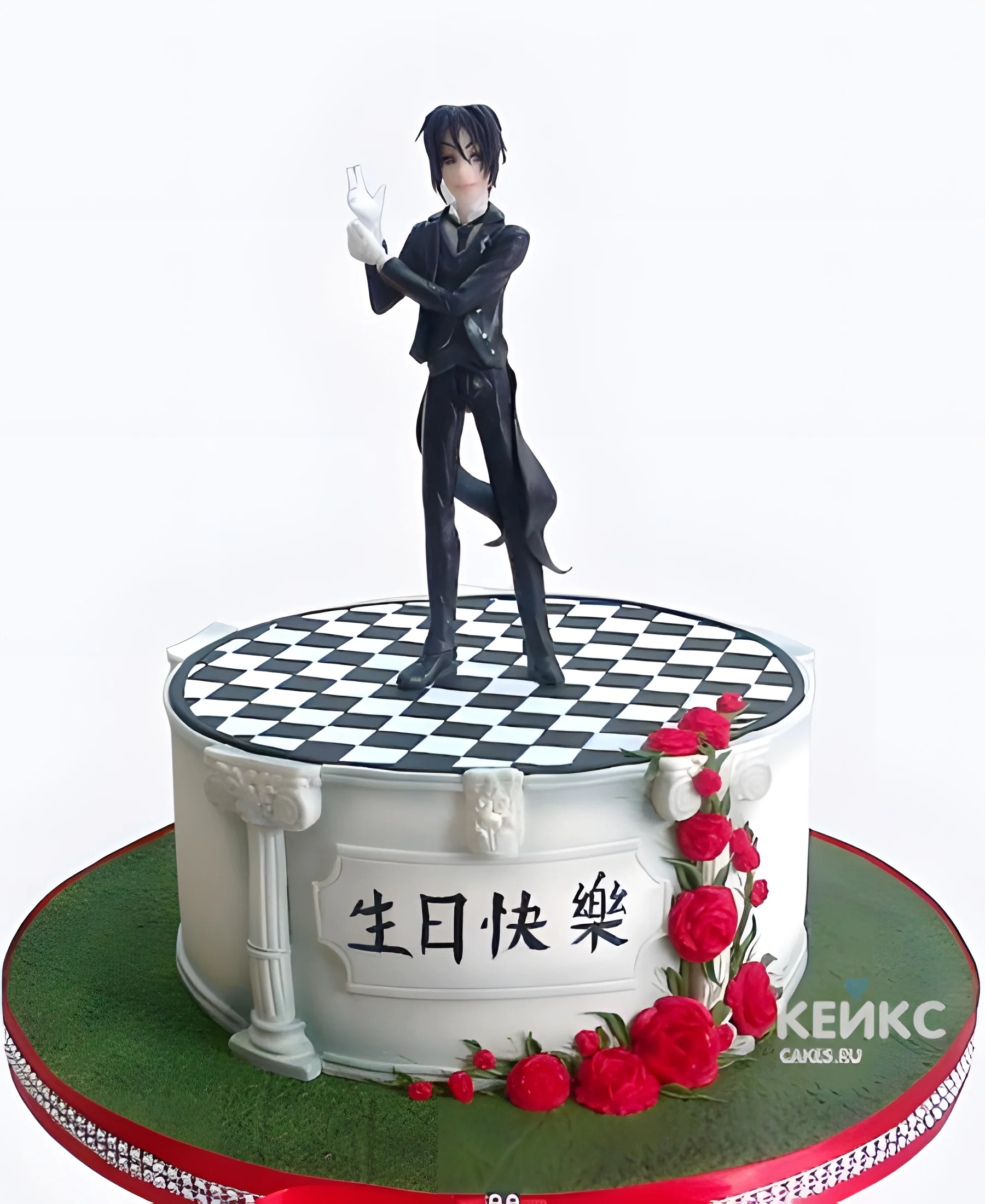 Красивый белый торт на день рождения аниме Темный дворецкий