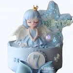 Красивый голубой торт Принцессе с бантом