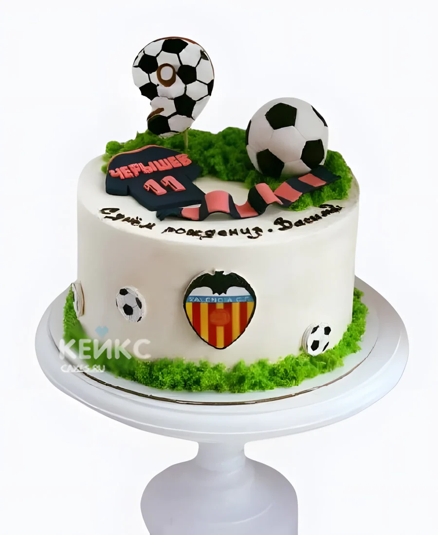 Красивый торт мальчику на 10 лет с инициалами и футболом