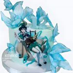 Красивый торт на день рождения в голубых тонах Геншин