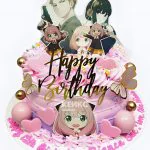 Красивый торт на день рождения в розовых тонах аниме Семейка шпионов