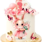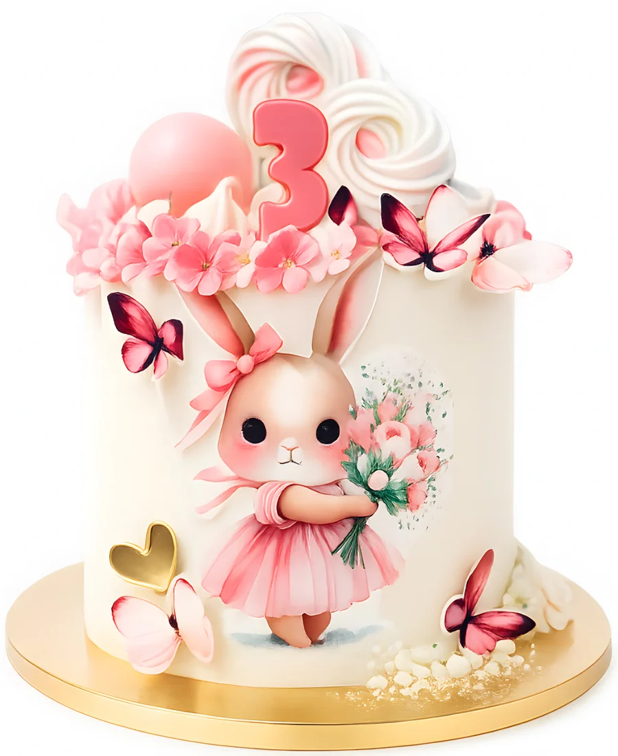 Красивый торт с бабочками и зайцем
