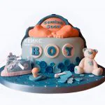 Красивый торт с мишкой и ботиночками на рождение скоро буду