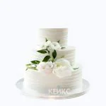 Красивый трехъярусный белый торт с цветами на 8 марта