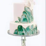 Двухъярусный бело-зеленый торт на свадьбу