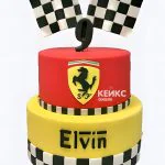 Красно желтый торт гонки с эмблемой ламборгини