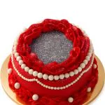 Красный бенто-торт с блестками и жемчугом