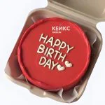 Красный бенто-торт на 18 лет с надписью и сердечками