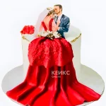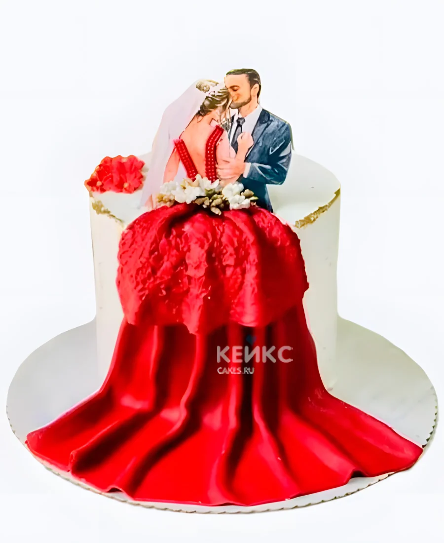 Красный свадебный торт Шлейф платья