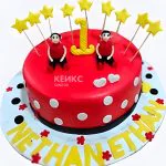 Красный торт с мальчиками на первый день рождения для двойняшек