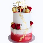 Красный торт с розами и сладостями