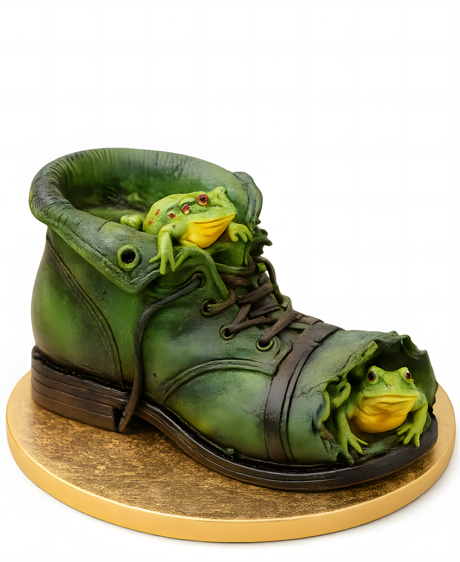 Креативный торт в виде ботинка с лягушатами