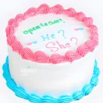 Нежный торт в пастельных тонах создает атмосферу трогательного ожидания. Сочетание нежно-розового и голубого цветов перетекает друг в друга мягкими волнами. Элегантная надпись «Мальчик или девочка?» добавляет торжественности моменту. Кремовая текстура покрытия напоминает воздушные облака, а плавные линии декора создают ощущение гармонии и завершенности. Каждый элемент композиции подчеркивает значимость предстоящего события.