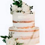 Кремовый свадебный торт открытый с розами