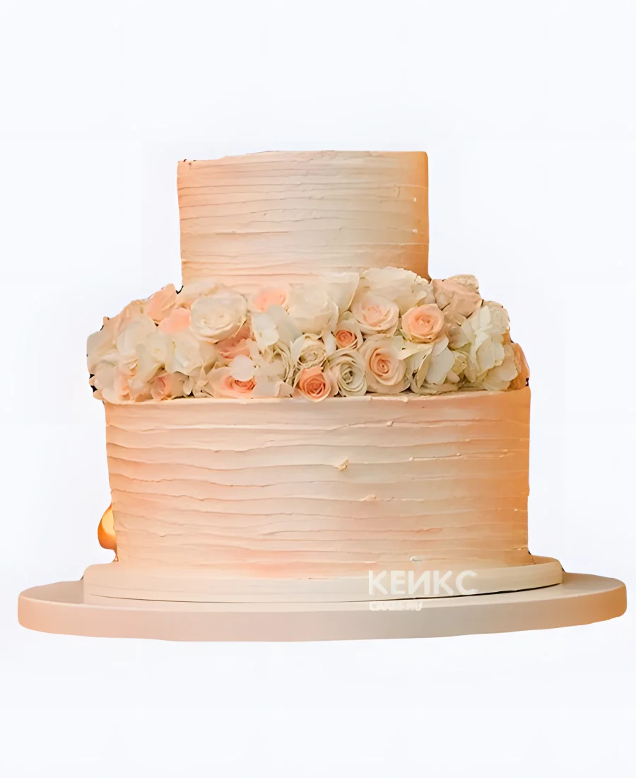Кремовый свадебный торт рифленый с мелкими розами