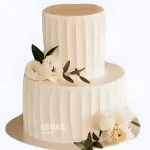 Кремовый свадебный торт с вертикальными линиями и цветами