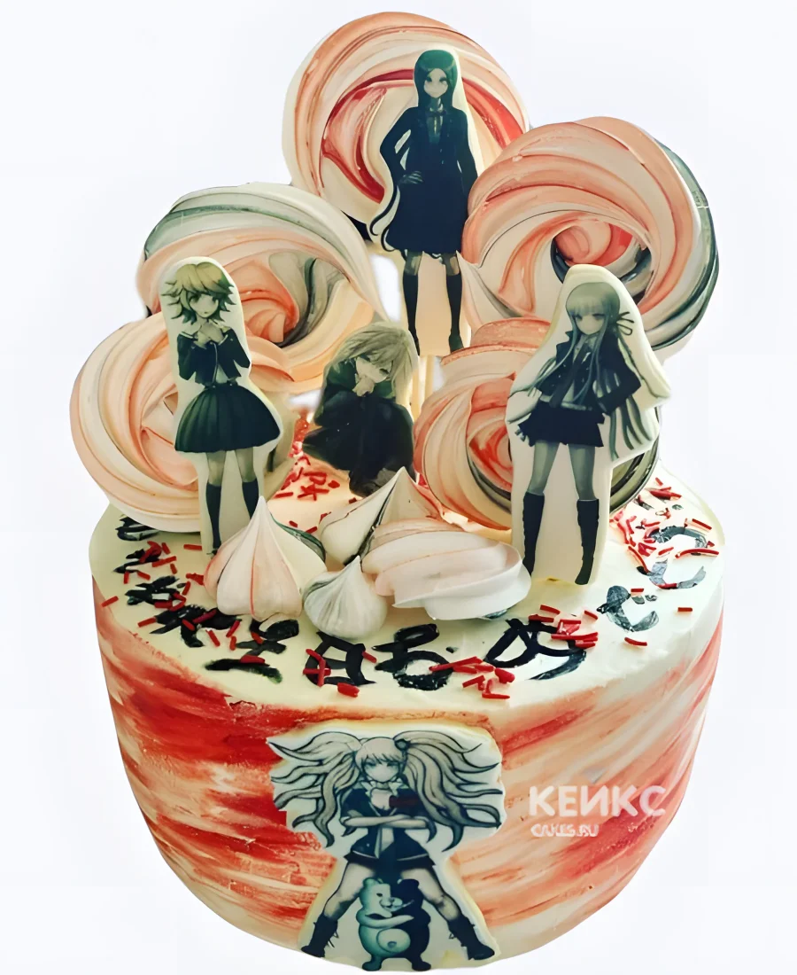 Кремовый торт на день рождения с безе аниме Данганронпа