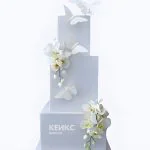 Квадратный свадебный торт Белоснежный с орхидеями и бабочками