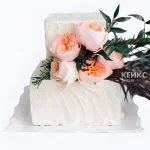 Этот элегантный квадратный торт словно оживший букет нежных пионов. Два яруса покрыты гладким кремом, создавая эффект шелковистой ткани. Роскошные цветы из крема, выполненные в пастельных тонах, спускаются каскадом по торту, напоминая свадебный букет. Мягкие переходы от белого к розовому придают торту воздушность и романтичность. Четкие геометрические формы гармонично сочетаются с плавными линиями цветочных композиций, создавая современный и стильный образ.