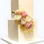 Квадратный свадебный торт Цветочная брошь с золотыми вкраплениями