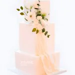 Квадратный свадебный торт Цветочный шлейф