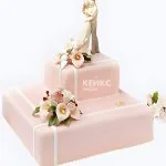 Квадратный свадебный торт с фигурками молодожен и каллами
