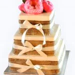 Квадратный свадебный торт с розовыми пионами и джутом с бантиками
