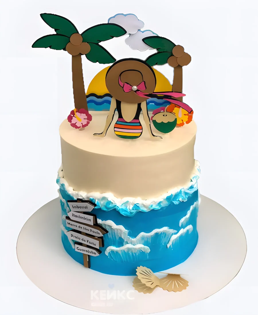Летний пляжный торт из мастики