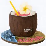Летний торт в виде кокоса с трубочкой
