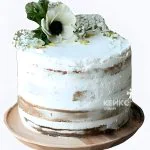 Нежный круглый торт в свадебной эстетике. Открытые коржи создают интересную текстуру, напоминающую слоистые облака. Белоснежный цветок с тонкими лепестками становится центром композиции, добавляя воздушности и романтики. Минималистичный декор подчеркивает элегантность и чистоту образа. Светлая палитра вызывает ощущение легкости и праздничного настроения.
