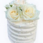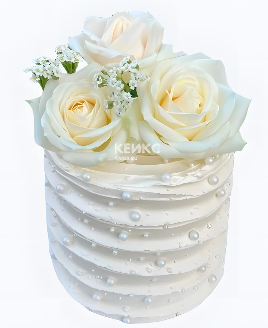 Маленький свадебный торт рифленый белые розы с жемчугом
