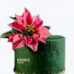 Маленький торт в изумрудном цвете с цветком