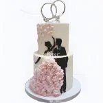 Свадебный торт двухъярусный с мастикой и кольцами