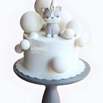 Миленький белый велюровый торт с фигуркой котика