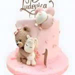 Милый розовый торт девочке на годик с медвежонком и единорогом
