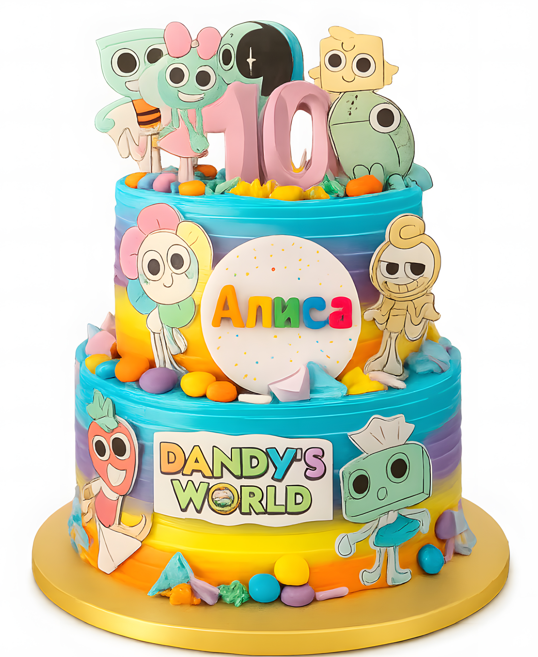Милый торт на 10 лет с аппликацией и мастичными шариками