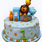 Милый торт паровозик с фигурками животных
