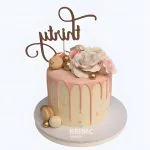 Милый торт женщине на 30 лет с цветами из мастики и макарунс