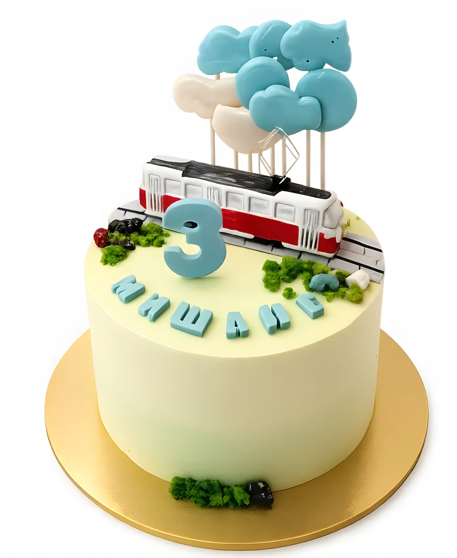Торт на 3 года с фигуркой трамвая