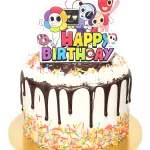 Минималистичный торт с фотопечатью и шоколадными подтеками