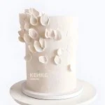 Нежный свадебный торт в пастельных тонах украшен изящными лепестками, создающими эффект цветочного кружева. Лаконичная круглая форма подчеркивает элегантность композиции. Светлые персиковые и кремовые оттенки лепестков переливаются мягкими градиентами, напоминая акварельные разводы. Каждый элемент композиции словно танцует в воздушном ритме, создавая ощущение легкости и праздничного настроения.
