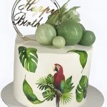 Минималистичный торт с попугаем и листьями