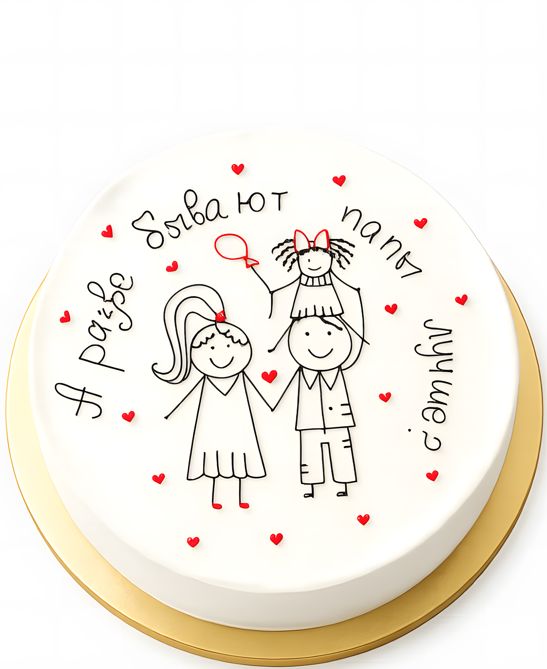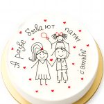 Минималистичный торт с рисунком папы и дочки