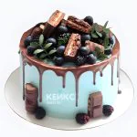 Небесно голубой торт мужчине на день рождения с фруктами и шоколадом