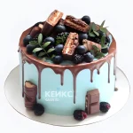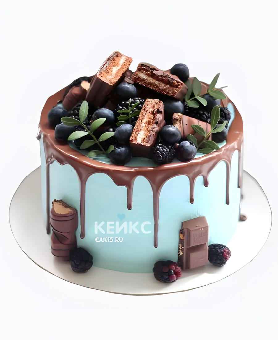 Небесно-голубой торт мужчине с фруктами и шоколадом