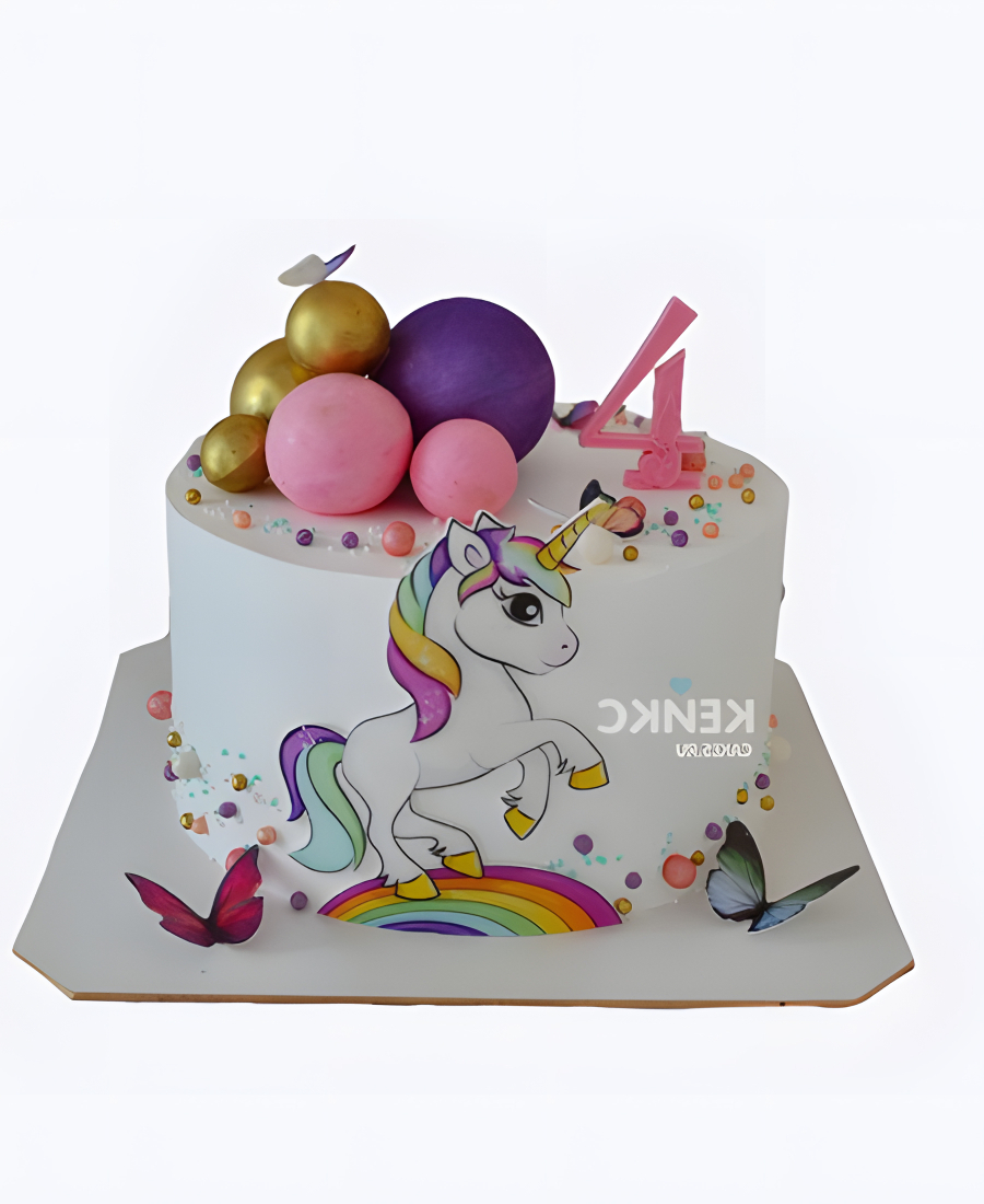 Недорогой торт на 4 года с цифрой и фотопечатью единорога