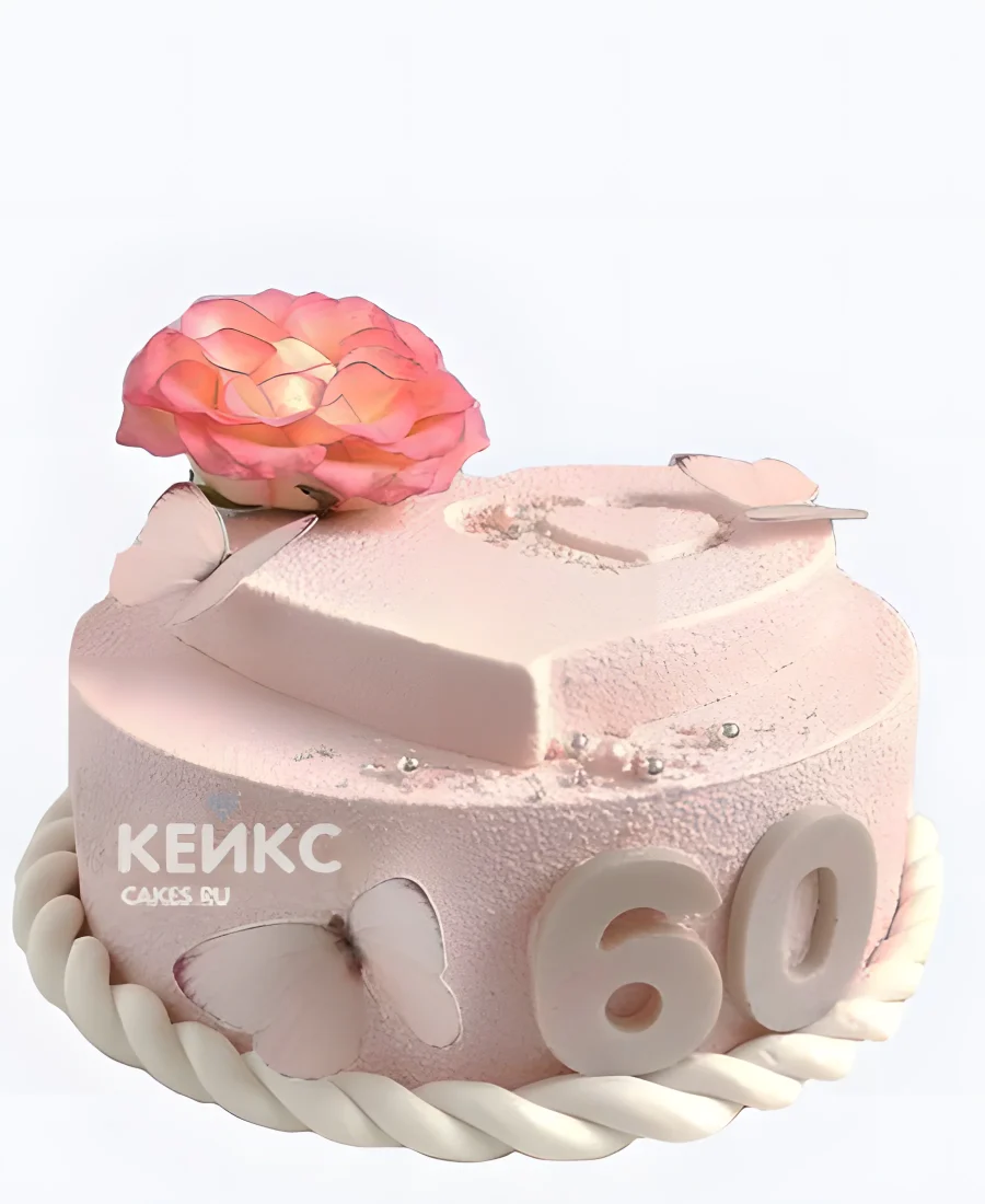 Необычный бенто торт женщине на 60 лет с цветком и бабочкой
