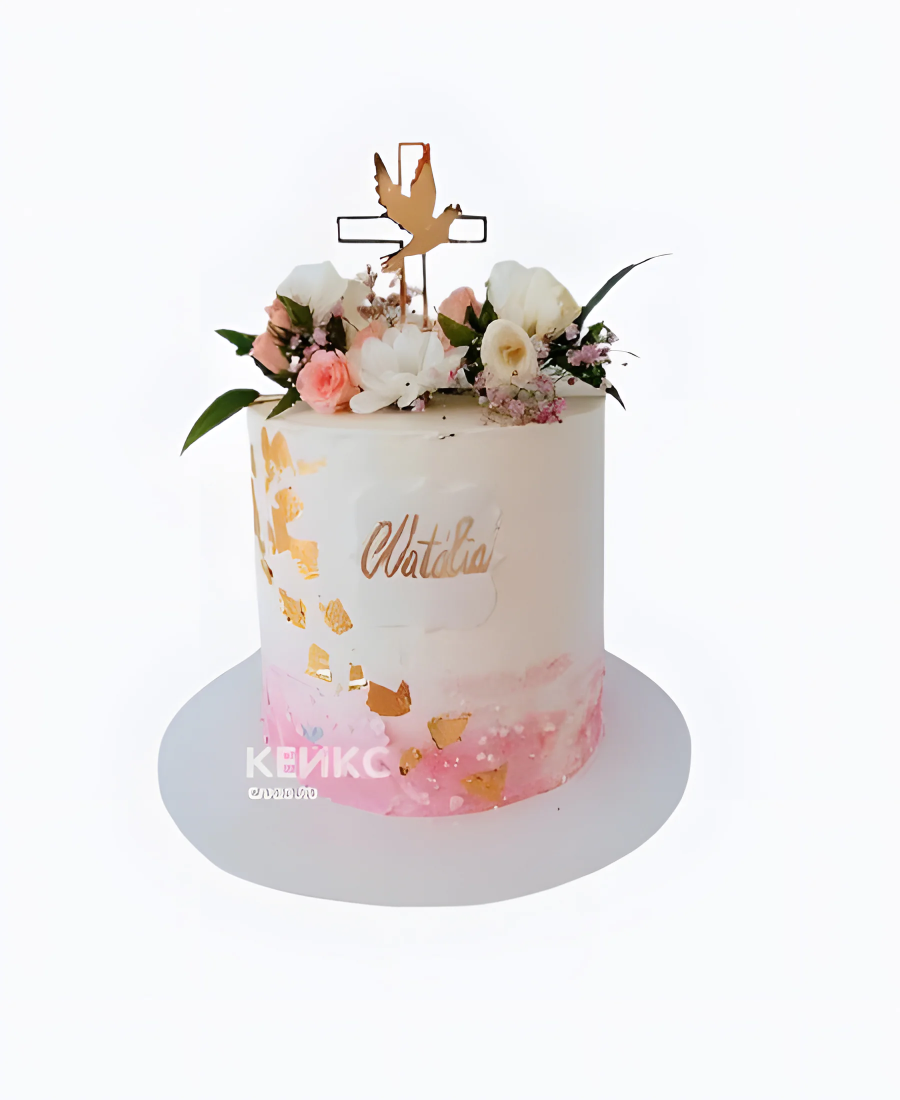 Неотразимый нежный торт девочке на крестины с цветами